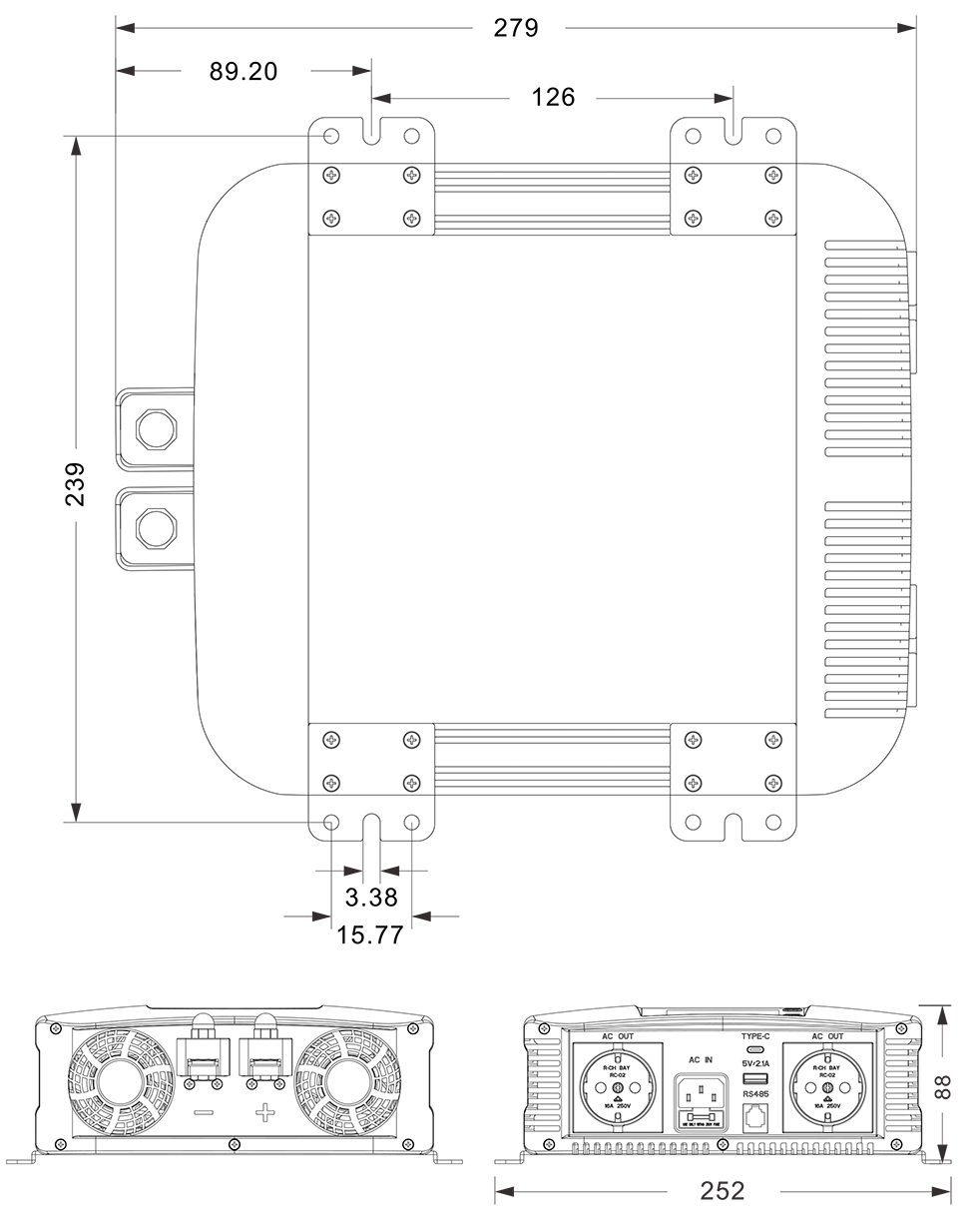 Mekaniske tegninger: (279x252x88mm mm)