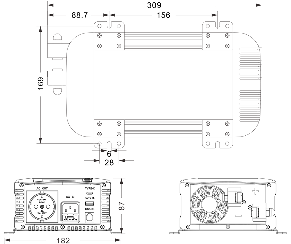 Mekaniske tegninger: (309x182x87mm)